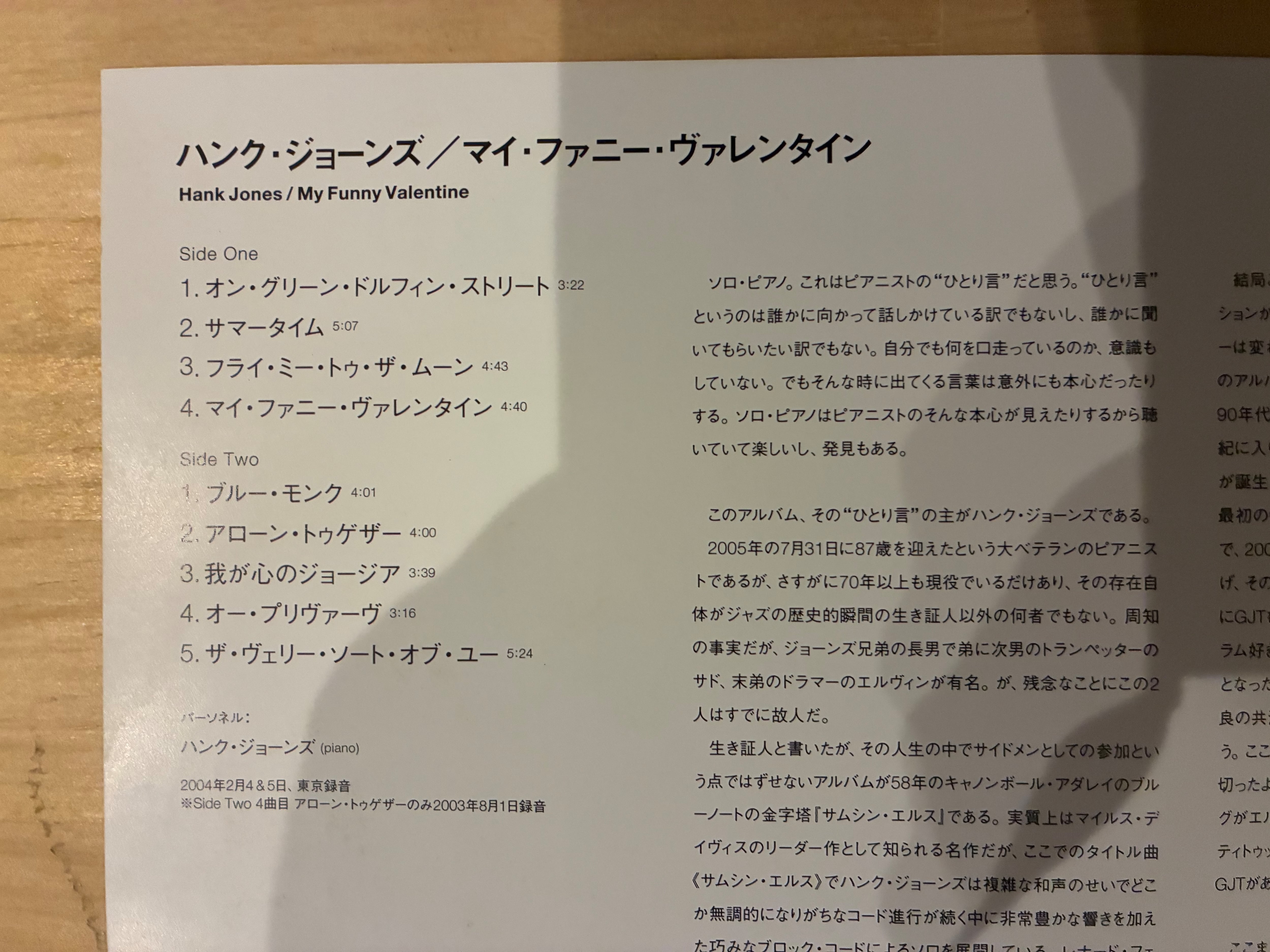 HANK JONES / MY FUNNY VALENTINE