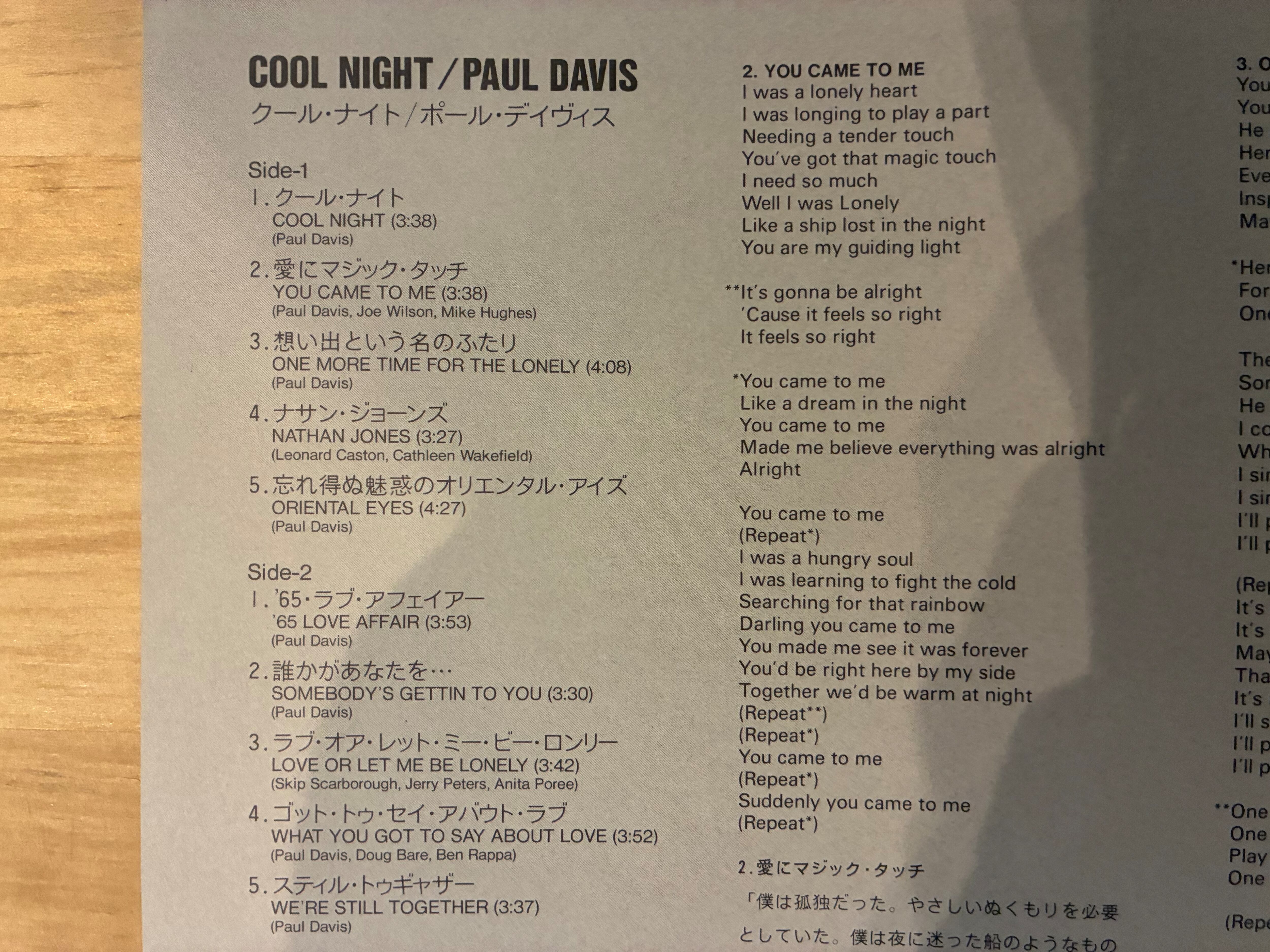 PAUL DAVIS / COOL NIGHT