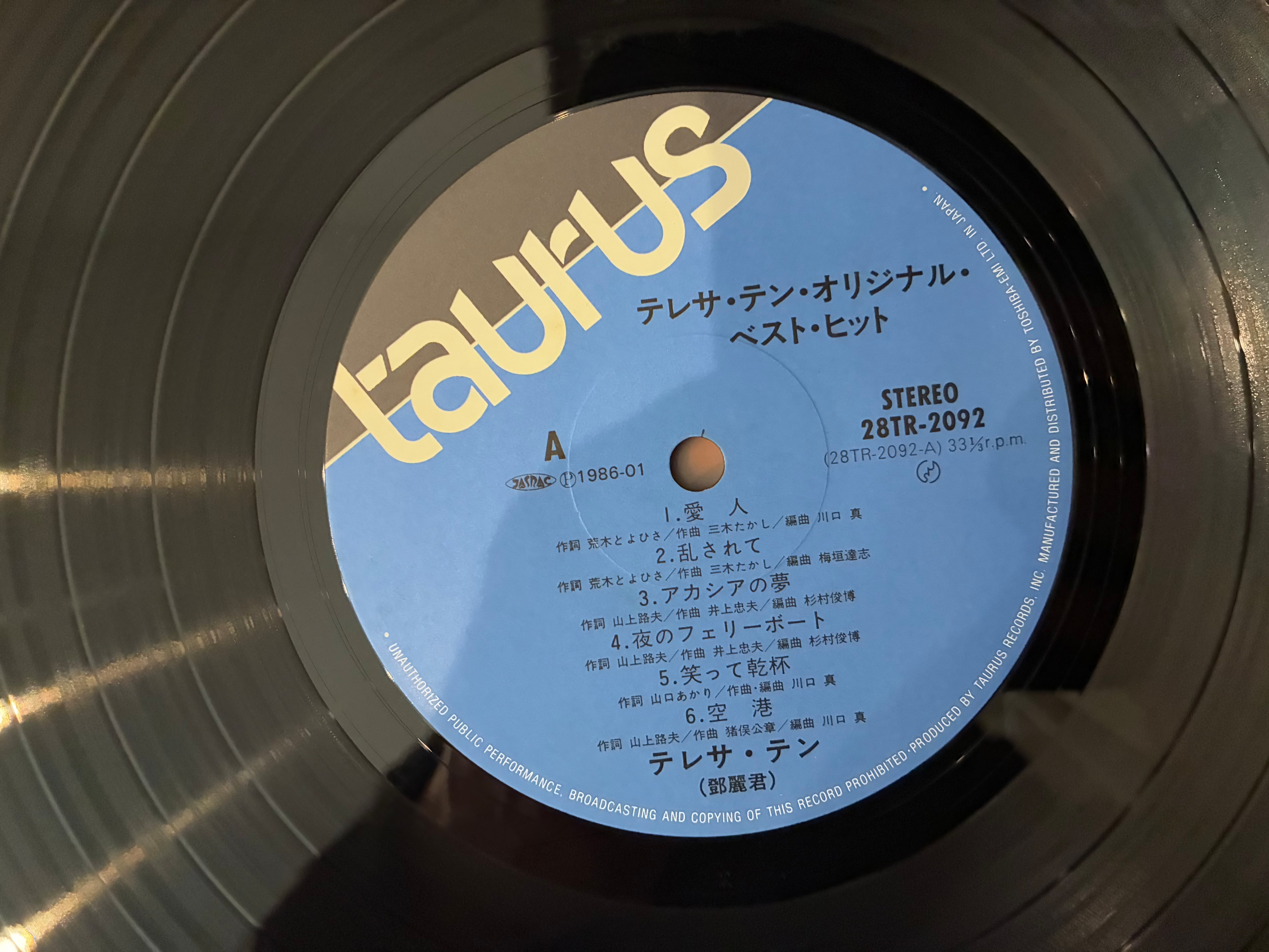 アジアの歌姫、テレサテンのヒット12曲を収録した85年リリースのベストアルバム