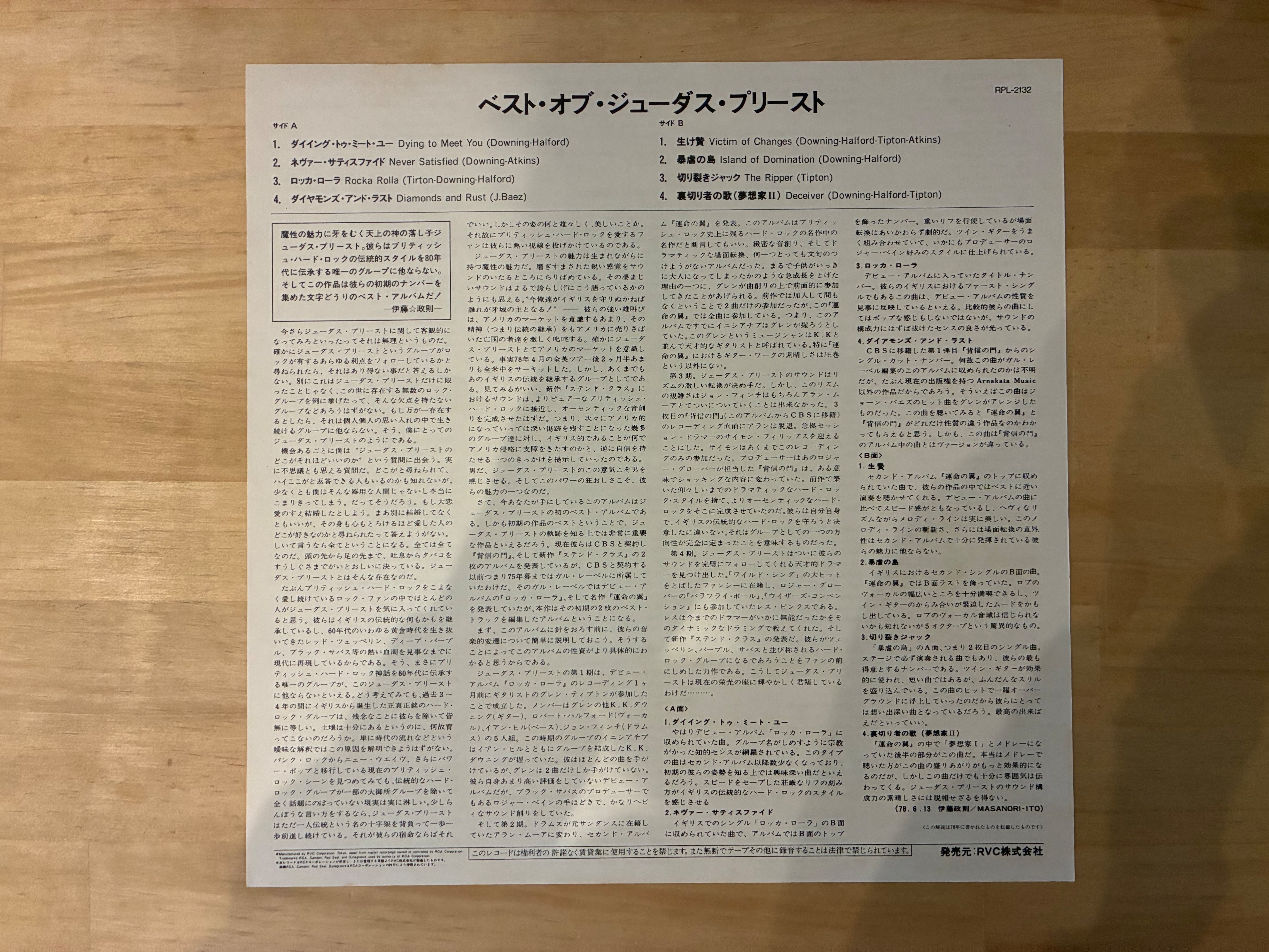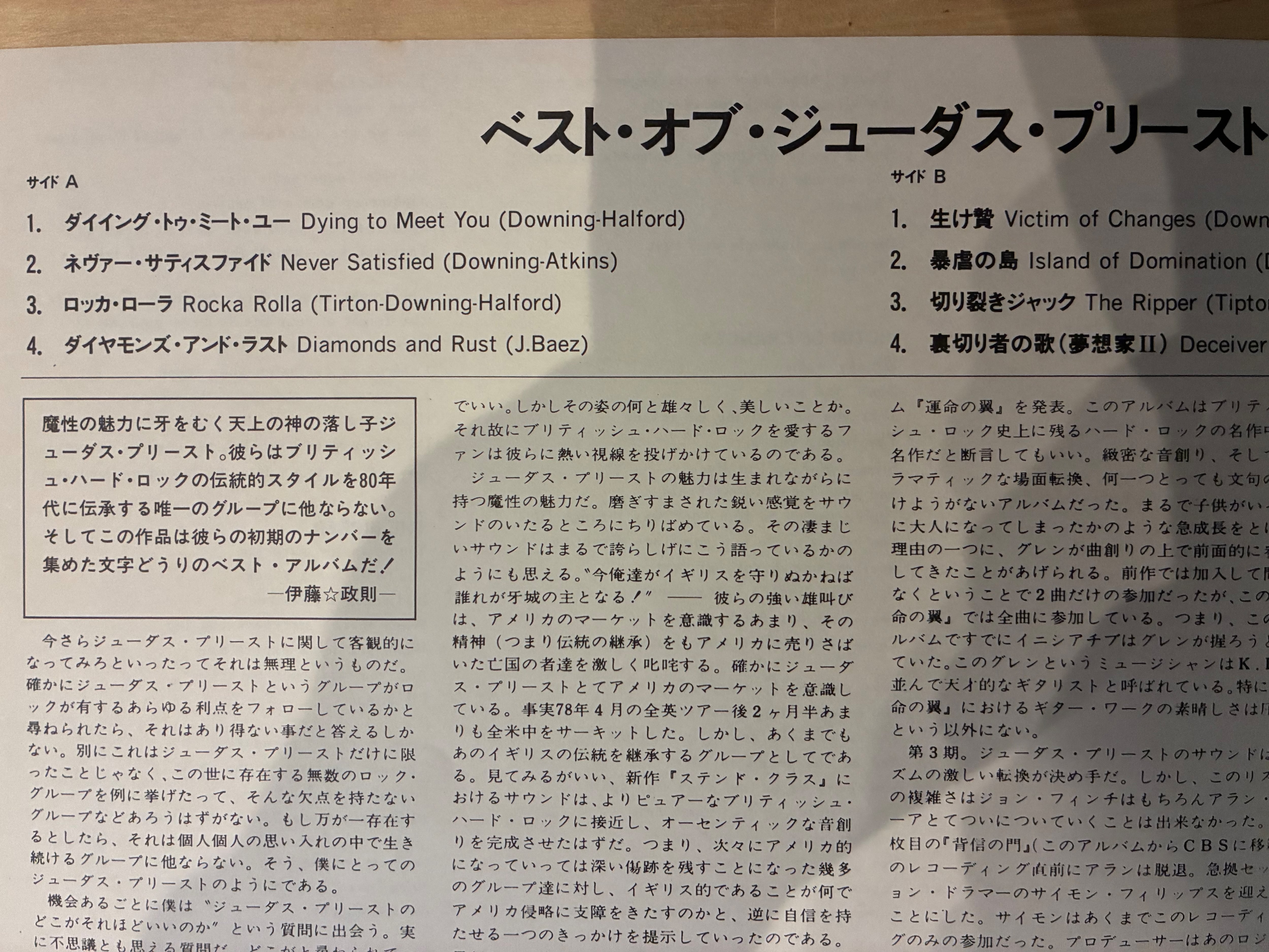 英国ヘヴィメタルバンド、ジューダスプリースト。78年リリースの初期ベストアルバム