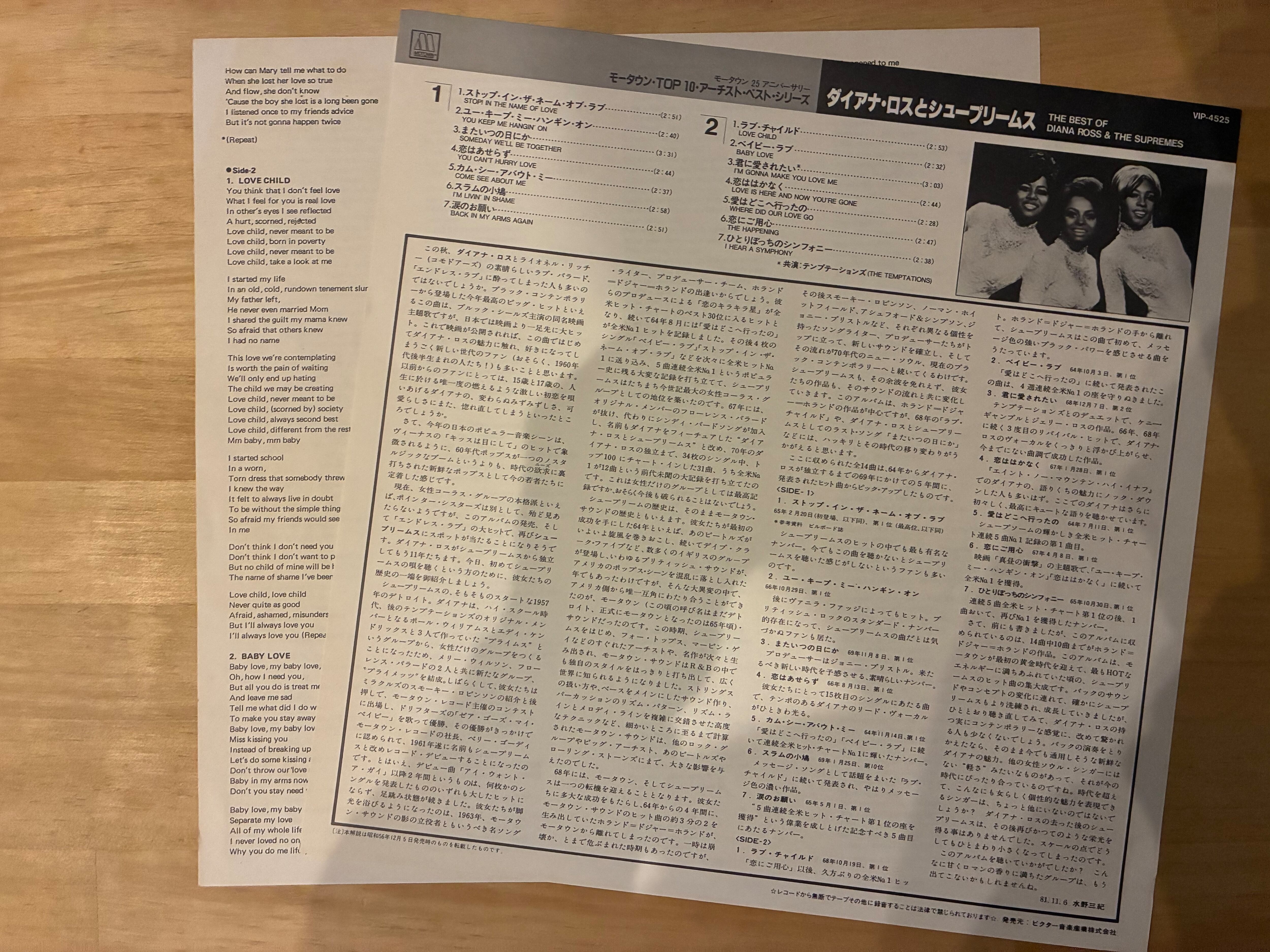 モータウンを代表する女性グループ、シュープリームスの全盛期ヒット曲を集めた83年リリース、ベストアルバム