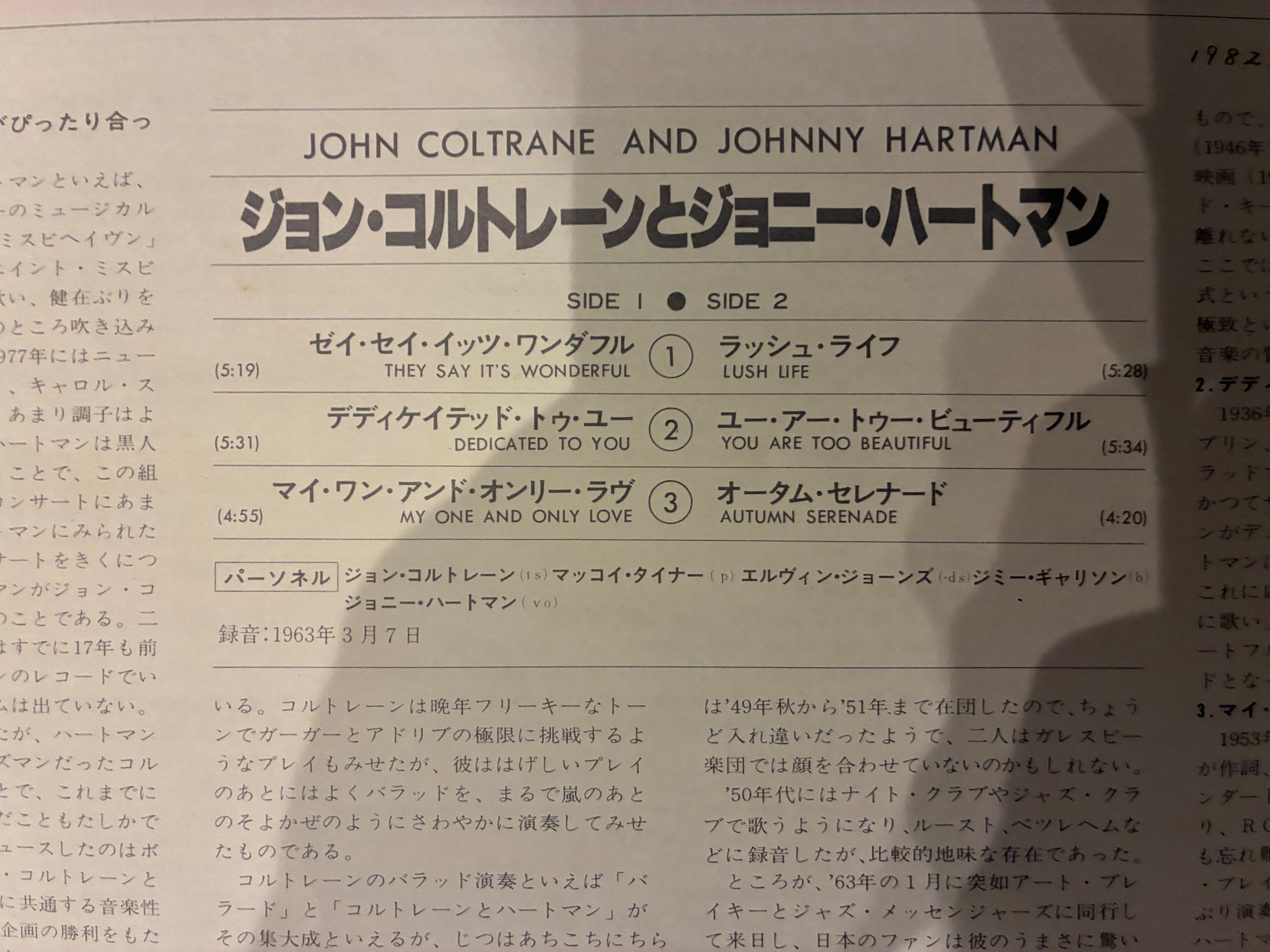 JOHN COLTRANE & JOHNNY HARTMAN
