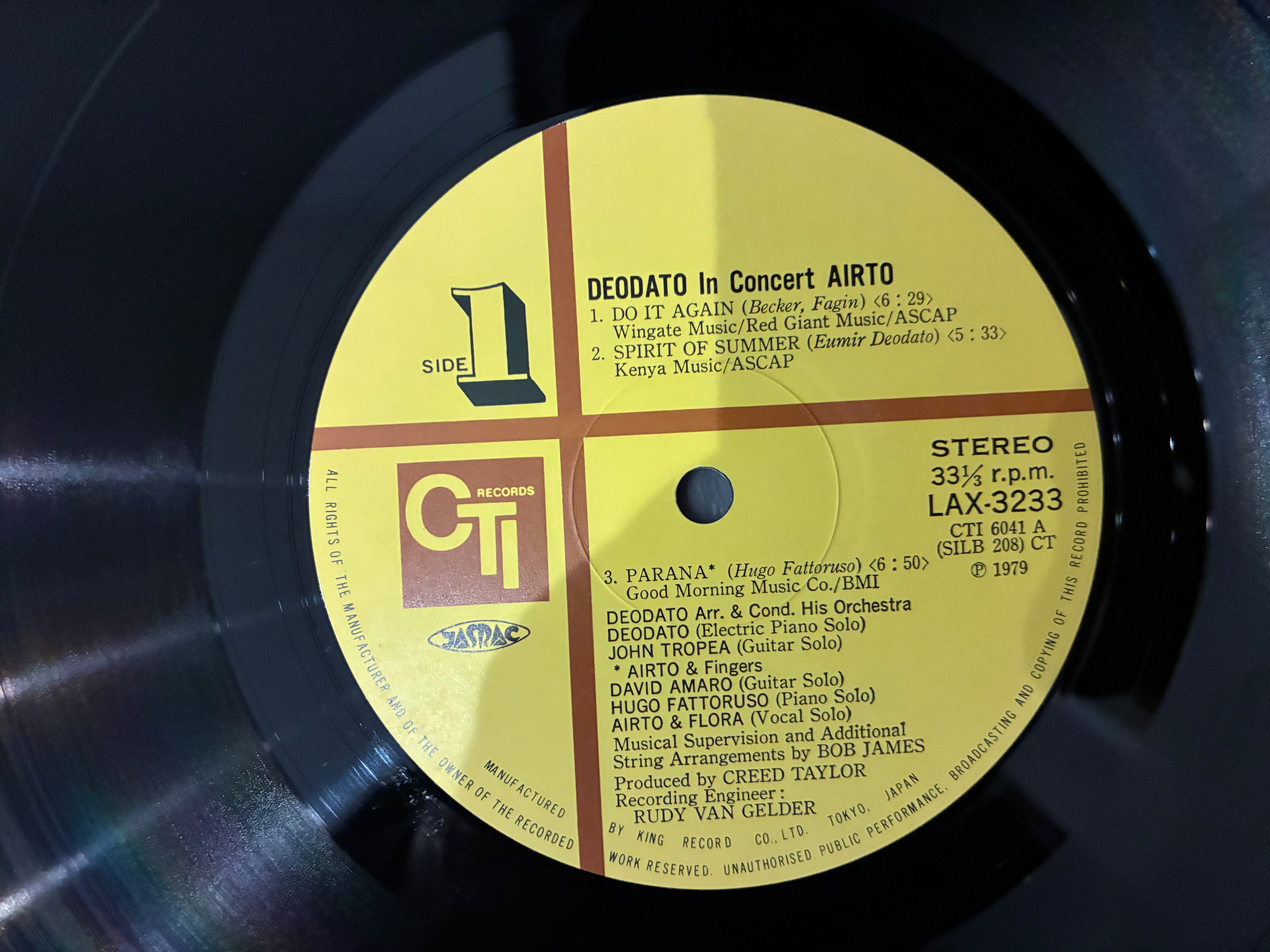 ブラジル出身のピアニスト、デオダートとパーカッション奏者、アイアートモレイラ共演の74年ジャズファンク作品