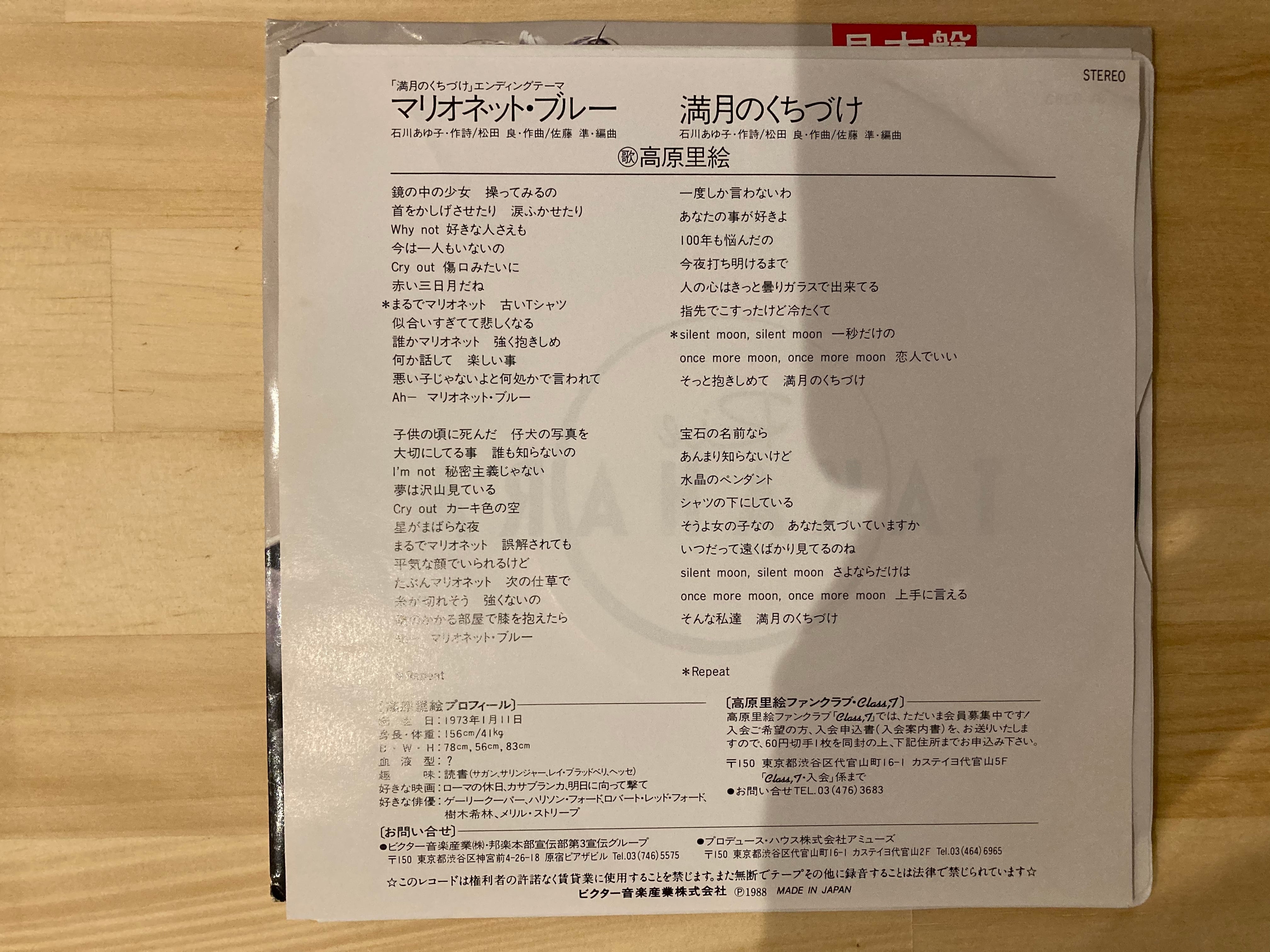 高原里絵(深津絵里) / マリオネットブルー(見本盤)