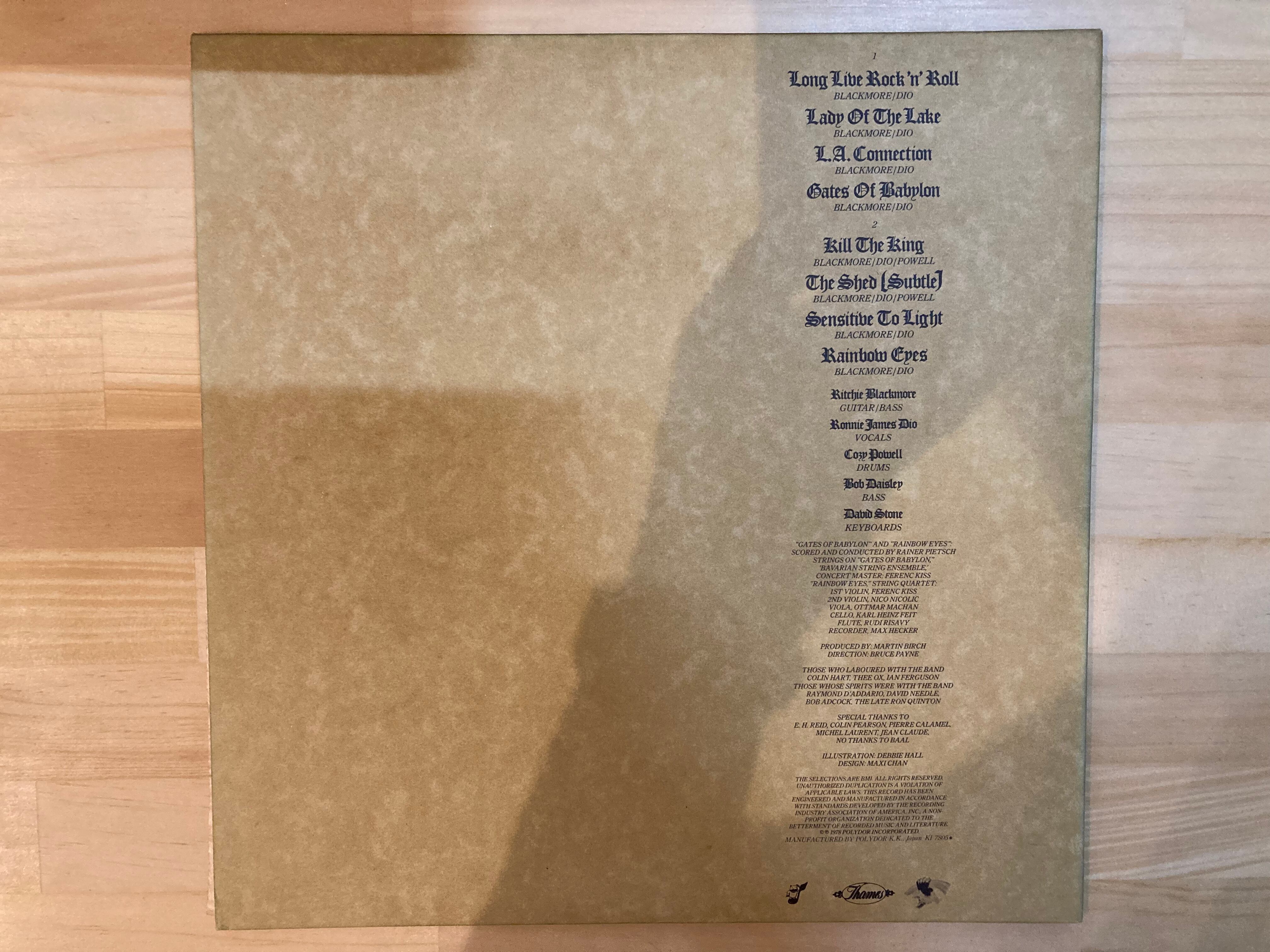 1978年の作品となるこのアルバムは、骨の髄からハードロッカーのロニー、ドラマーに「音楽業界の渡り鳥」、コージー・パウエルという顔合わせ。リッチーがこの2人と組むのは3作目になる。3人の力と技が伯仲し、様式美を生かしつつも気合いの入ったハードなサウンドを叩き出している。傑作は中世的フレイバー漂うメロディ進行の<4>。次々と独特のフレーズを紡ぎ出すリッチーのまさに独壇場である。ほかには、腹に響くハード・チューン<1>、レインボーの代表曲としてあげられる<5>を収録。レインボー第1期の名作として必聴の1枚。