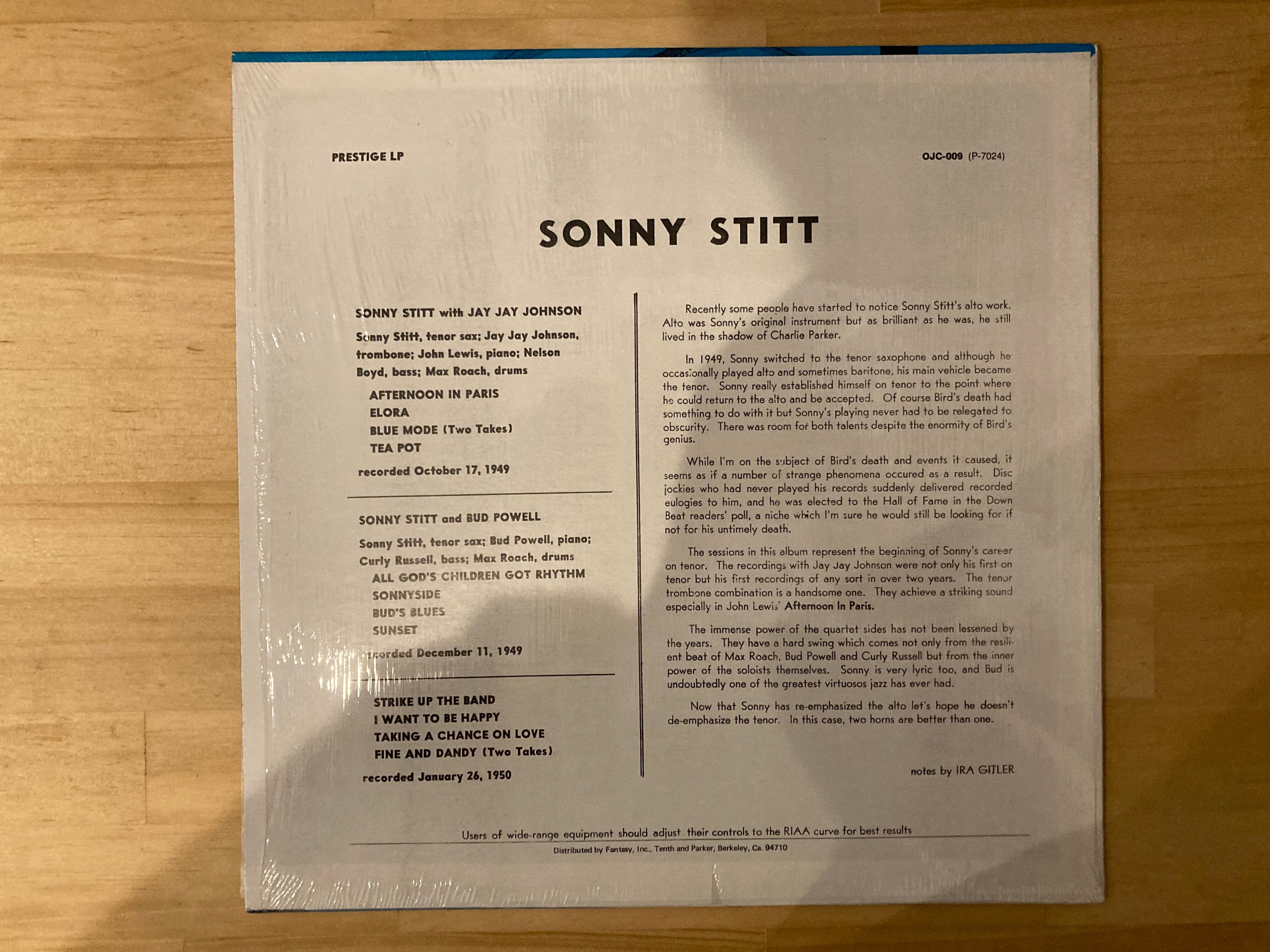 テナーサックス奏者ソニースティットによる50年録音のバドパウエル、J.Jジョンソンとの共演作品