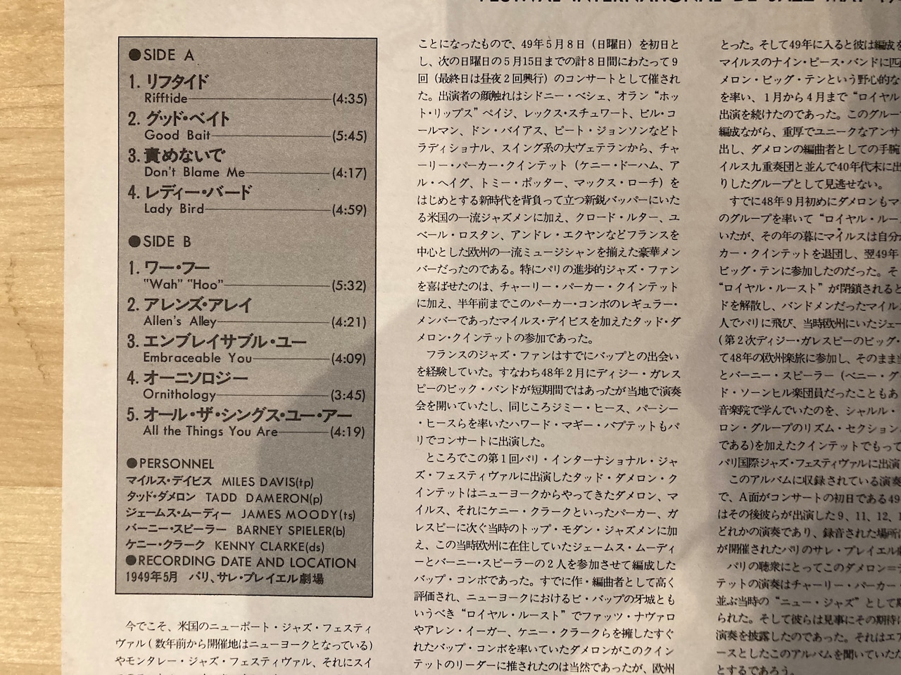 マイルスとタッドタメロン共演の49年パリジャズフェスティバル録音作品